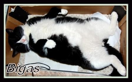 Bigas – vienas gražiausių ir švelniausių mums žinomų katinėlių. Tada, kai su juos susipažinome, apvalus jo pilvukas, putlios letenėlės, pūsti skruostukai kėlė šypseną. Besiridenantis švelnus milžinas, visiems geras ir draugiškas. Šiandien storuliuko Bigo viršsvoris nebekelia šypsenos, priešingai – esame rimtai sunerimę.