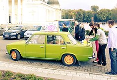Šeštadienio popietę Vilniaus miesto centre šurmuliavo „Tautų mugė", o visai šalia, kur eismas nebuvo uždarytas važinėjo žalias žiguliukas, kuris kvietė sužvarbusius praeivius pasivaišinti kava. Linksmoji žiguliuko kompanija riedėdama Vilniaus centro gatvėmis džiugino praeivių akis, dažnas pakeleivis atsisukdavo pažiūrėti į ryškiaspalvį automobilį, užsienio svečiai fotografavo senamiesčio gatvelėmis skriejančią „Cafe del Arte" šutvę, mielai vaišinosi cinamonine kava.