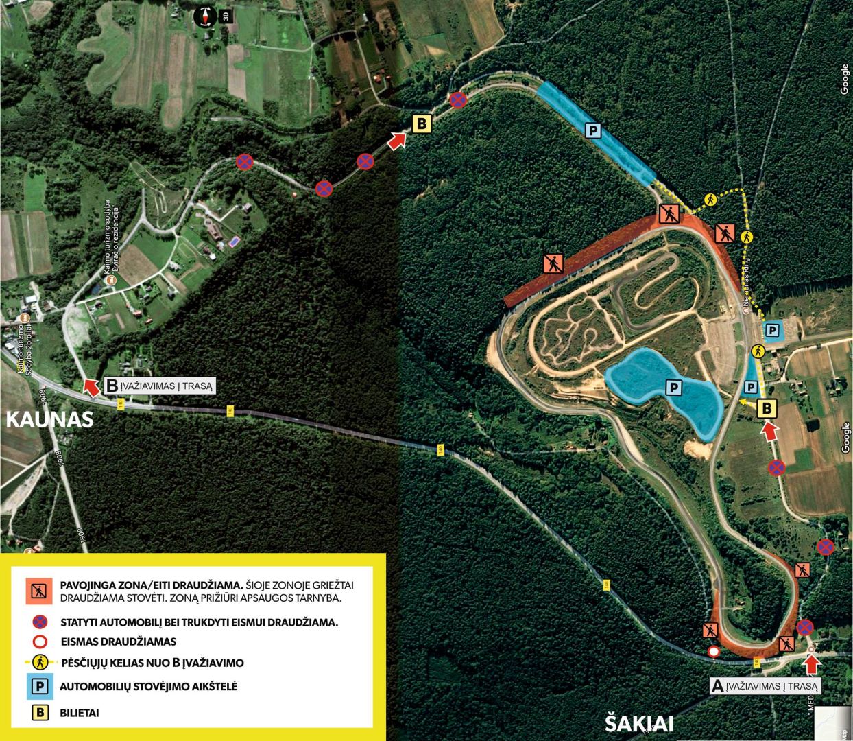 Trumpai – į trasą bus galima patekti pro tradicinį „A“ įvažiavimą, kuriuo naudosis visi varžybose dalyvaujantys lenktynininkai, ir „B“ įvažiavimu, kurį bus galima rasti vadovaujantis informaciniais ženklais pakeliui į trasą.