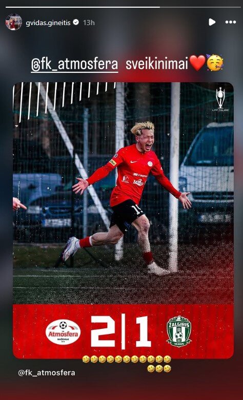„Sveikinimai“, – prie sensacingos rezultato rašė G.Gineitis ir uždėjo širdutę ir švenčiančiojo veiduką.